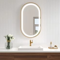 Kalia EFFECT 24″ X 32″ Oval LED Lighting Mirror With Interior Frosted Strip And 2-Tones Touch Switch
