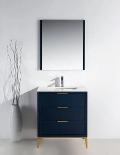 Kube Bath Divani 36″ Floor Mount Bathroom Vanity With Quartz Countertop, Backsplash And 3 Drawers