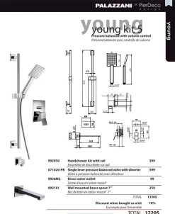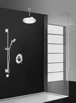 Kube Bath Aqua Piazza Shower Set With 8″ Square Rain Shower, 4 Body Jets And Handheld Chrome