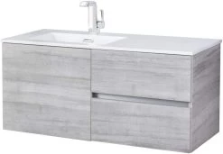 - Wood finish. This vanity features a warm woodgrain tone that blends the past with the present to enhance any bathroom.