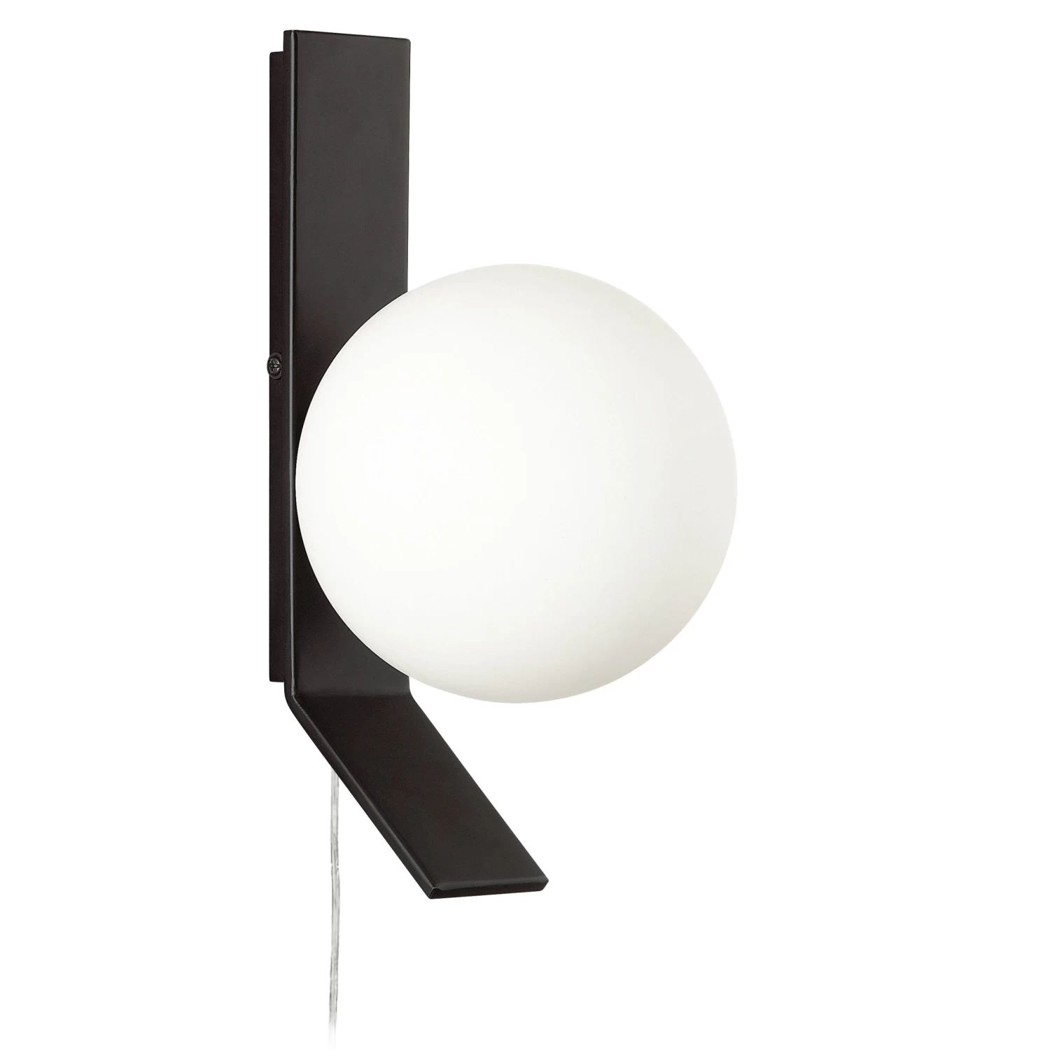 1 Light Halogen Wall Sconce, Matte Black w/ White Glass
