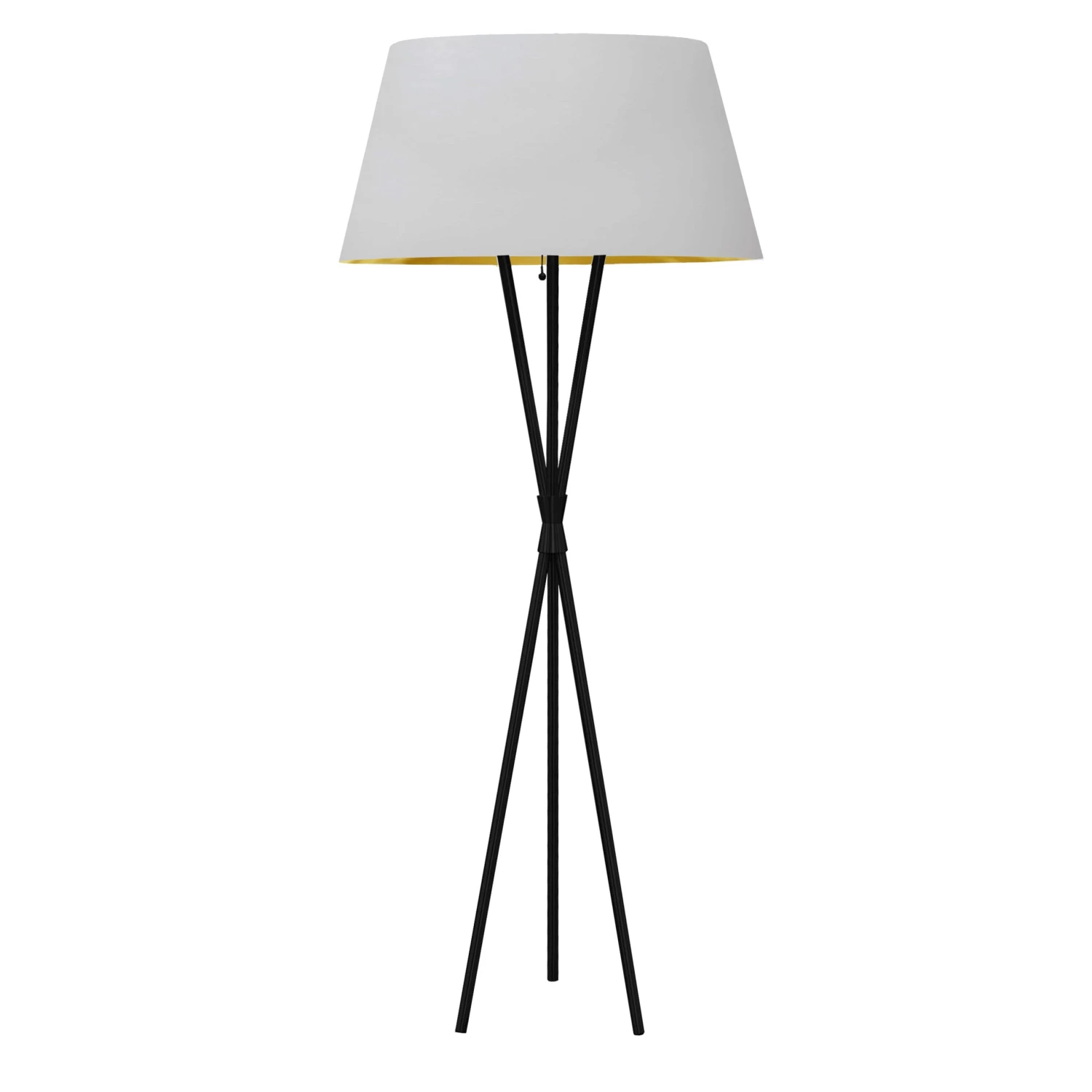1 Light 3 Legged Matte Black Floor Lamp, with White/Gold Shade.