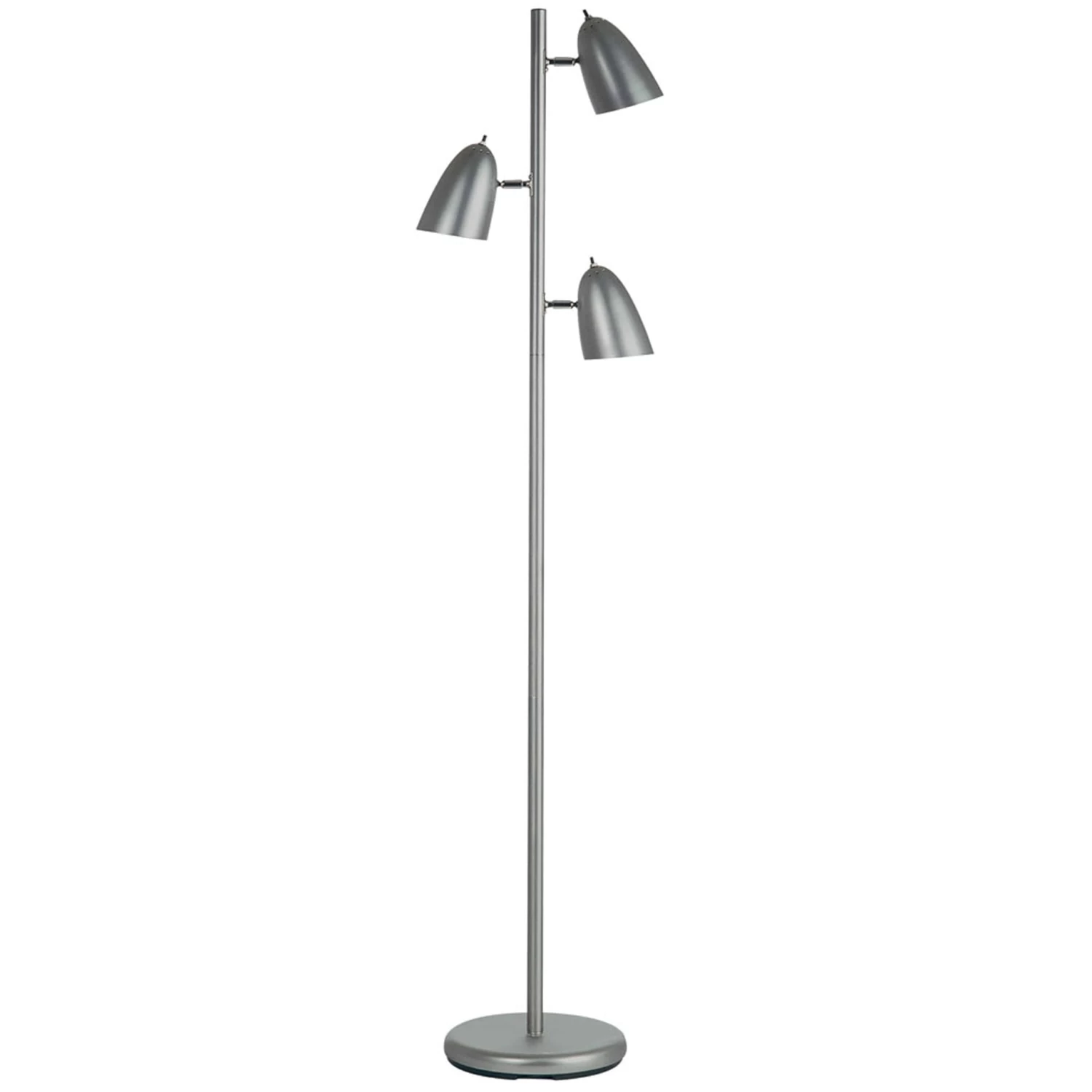 3 Light Floor Lamp, Painted Satin Chrome, Adjustable Heads.