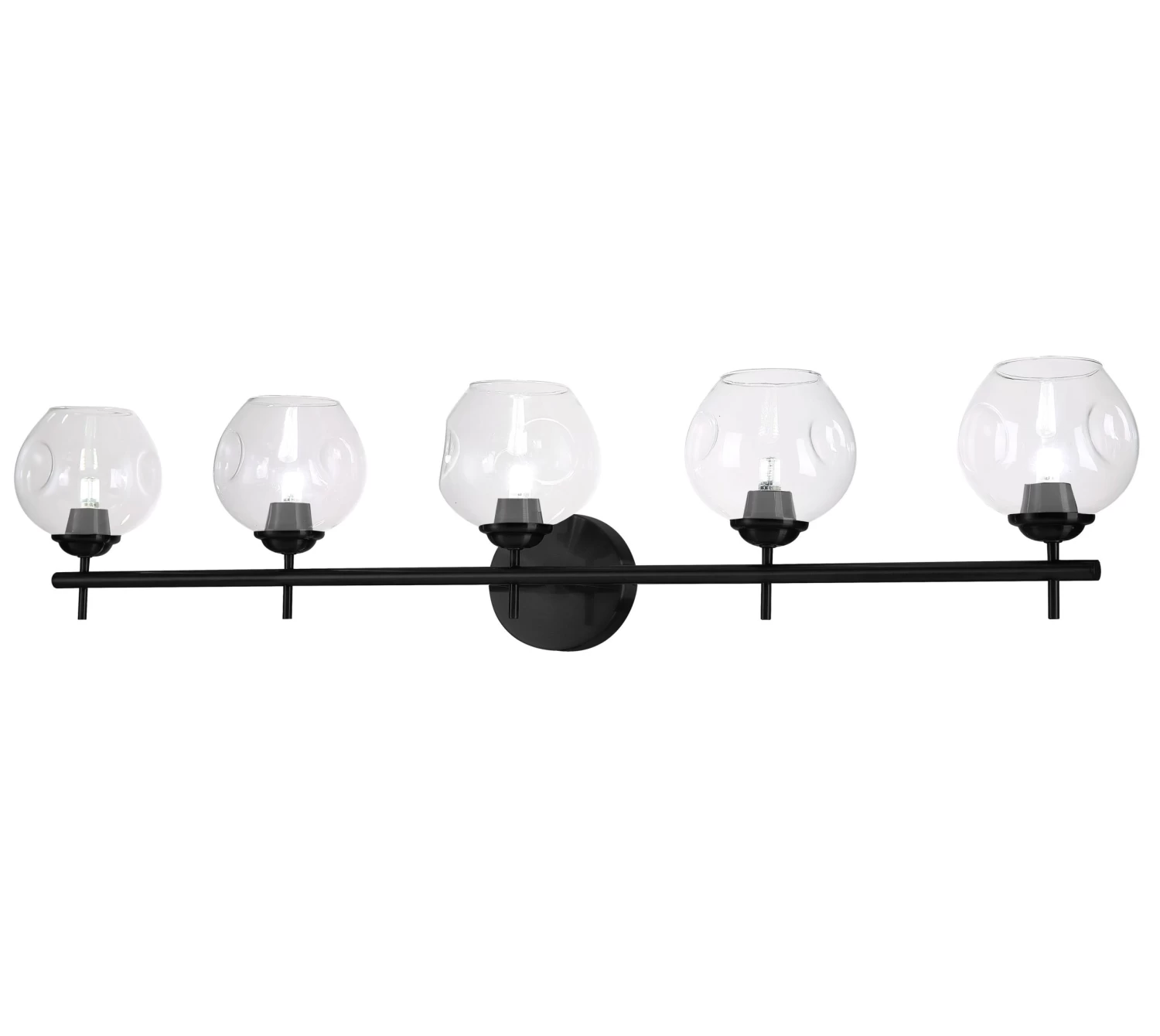 5 Light Halogen Matte Black Vanity w/ Clear Glass