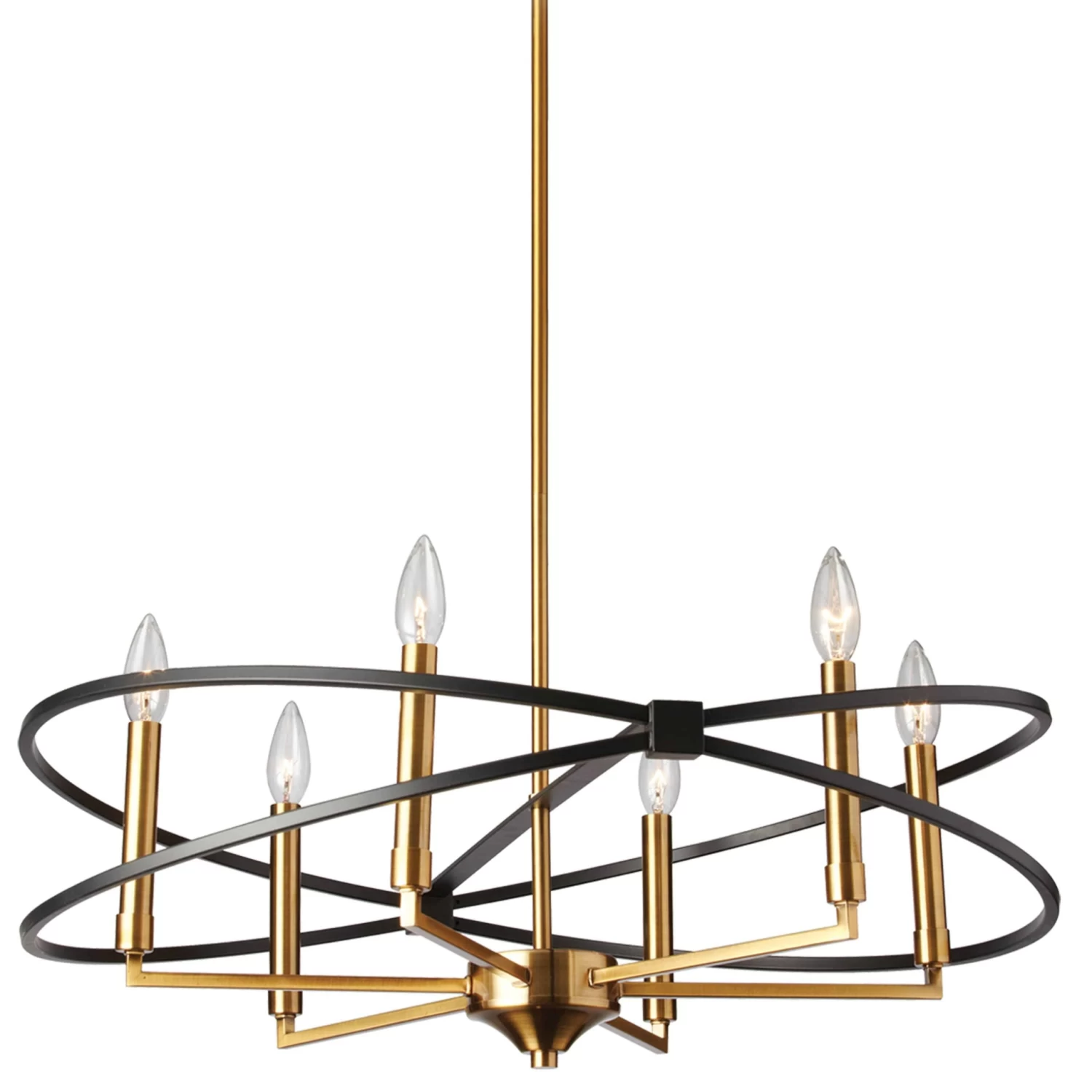 6 Light Chandelier, Vintage Bronze and Matte Black Finish