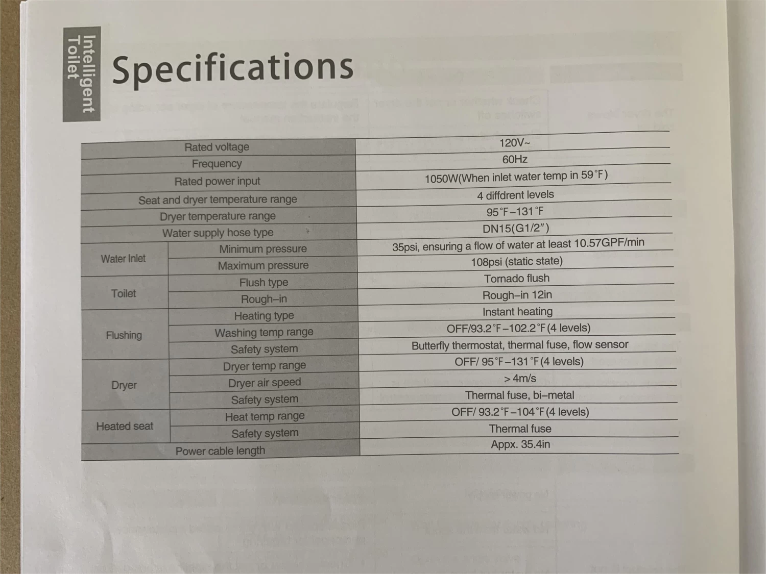 - Nano anti-bacterial technology on the toilet seat, with seat sensors and adjustable temperature settings