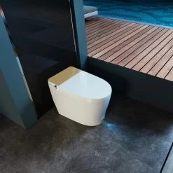 - Soft close toilet seat, with heating capabilities and options for remote opening (either seat or lid) or kicking open