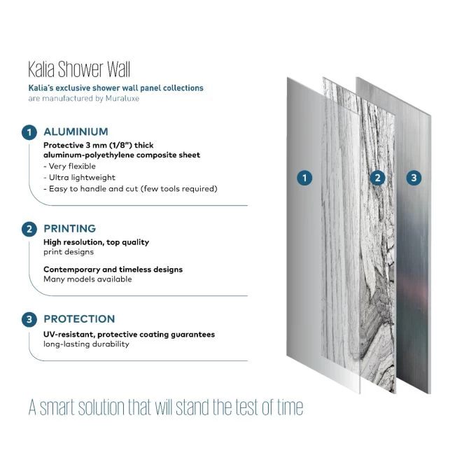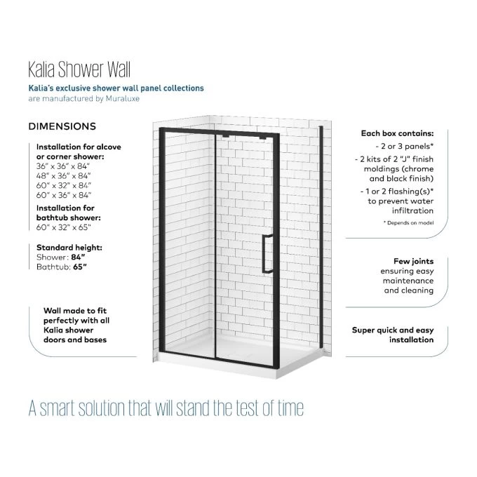 - Wall made to fit perfectly with all Kalia shower doors and bases