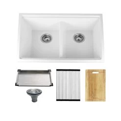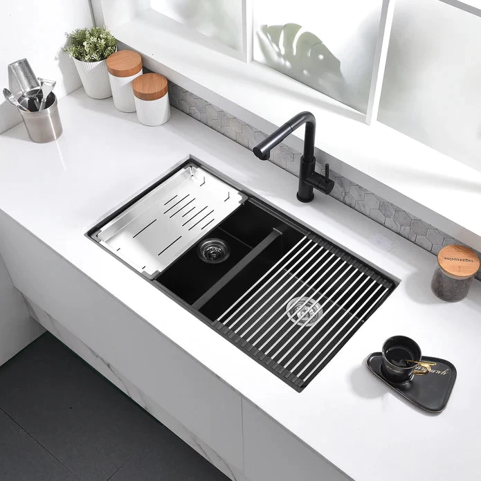 - The package comes with great accessories that include colander, strainers, cutting board and roll mat, which can be slid across the built-in ledge, saving space on the kitchen countertop, helping you use your space to the fullest