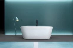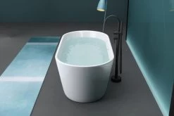 The arched detail creates a significant drop shadow, which gives the impression of a floating bathtub.