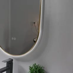 - Seamless stainless design frame in brushed gold or black around the mirror