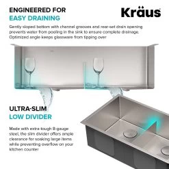 - ULTRA-SLIM LOW DIVIDER offers the openness of a single bowl sink with extra clearance for washing large items like baking sheets while preventing overflow onto the kitchen counter