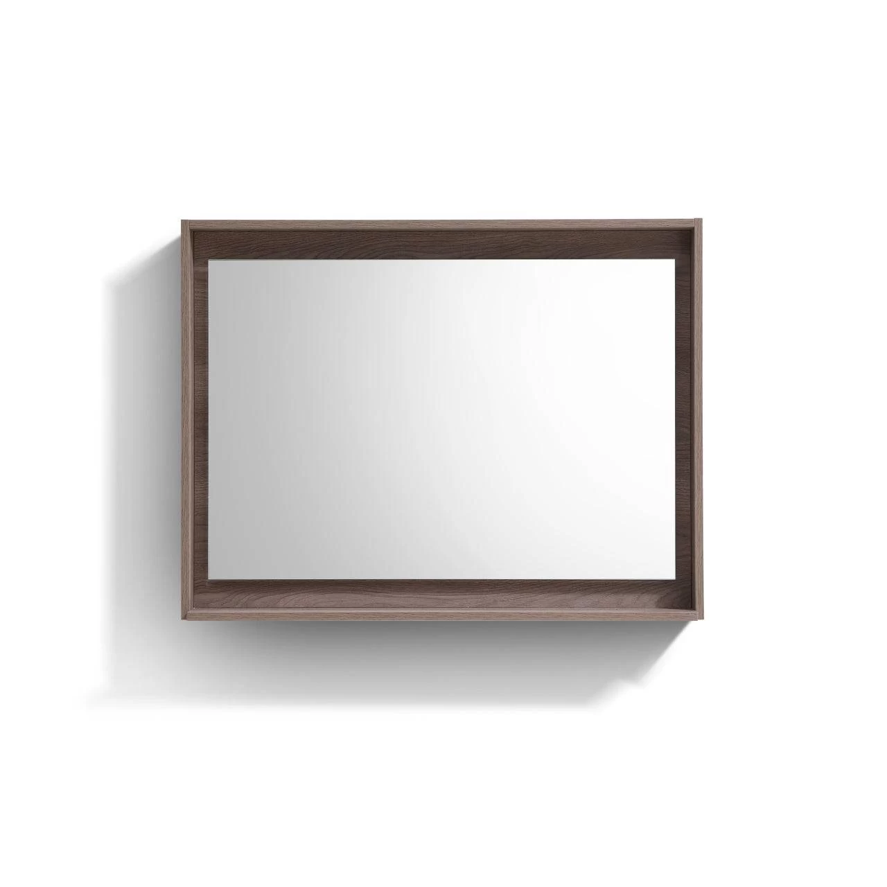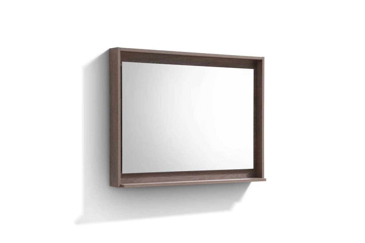 Our Bosco Mirrors match perfectly our Bosco Vanity line and will add great additional to your Bathroom. This Mirror features a shelve and matching frame all around the Mirror.