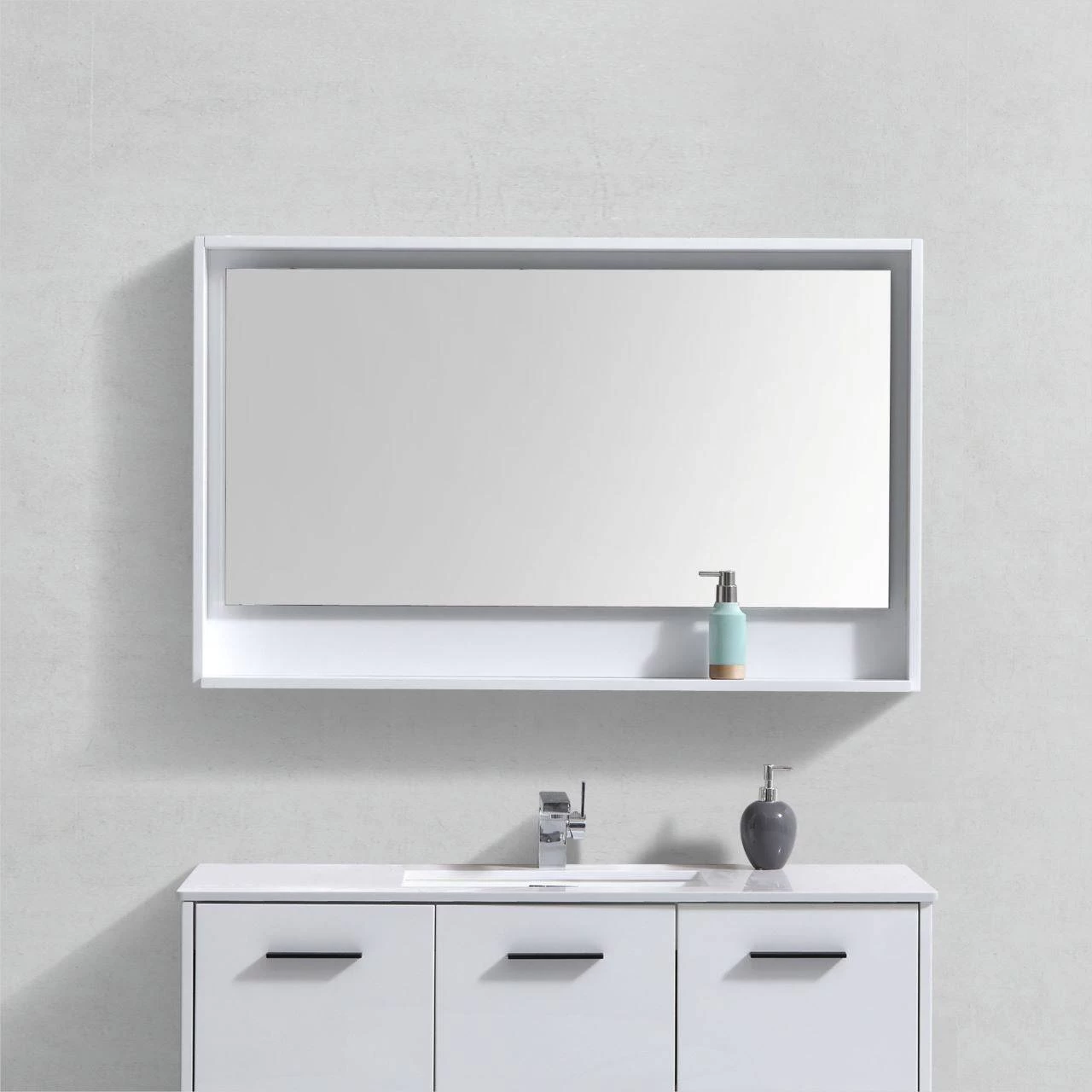 48 Inch Wide Bathroom Vanity Mirror With Shelf – High Gloss White