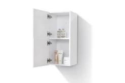 The Bliss Linen Side Cabinet features three doors with push-open operation and three large storage areas to store bathroom essentials. It is perfect to store large towels and tall bottles. It matches nicely with any same finish Vanity.