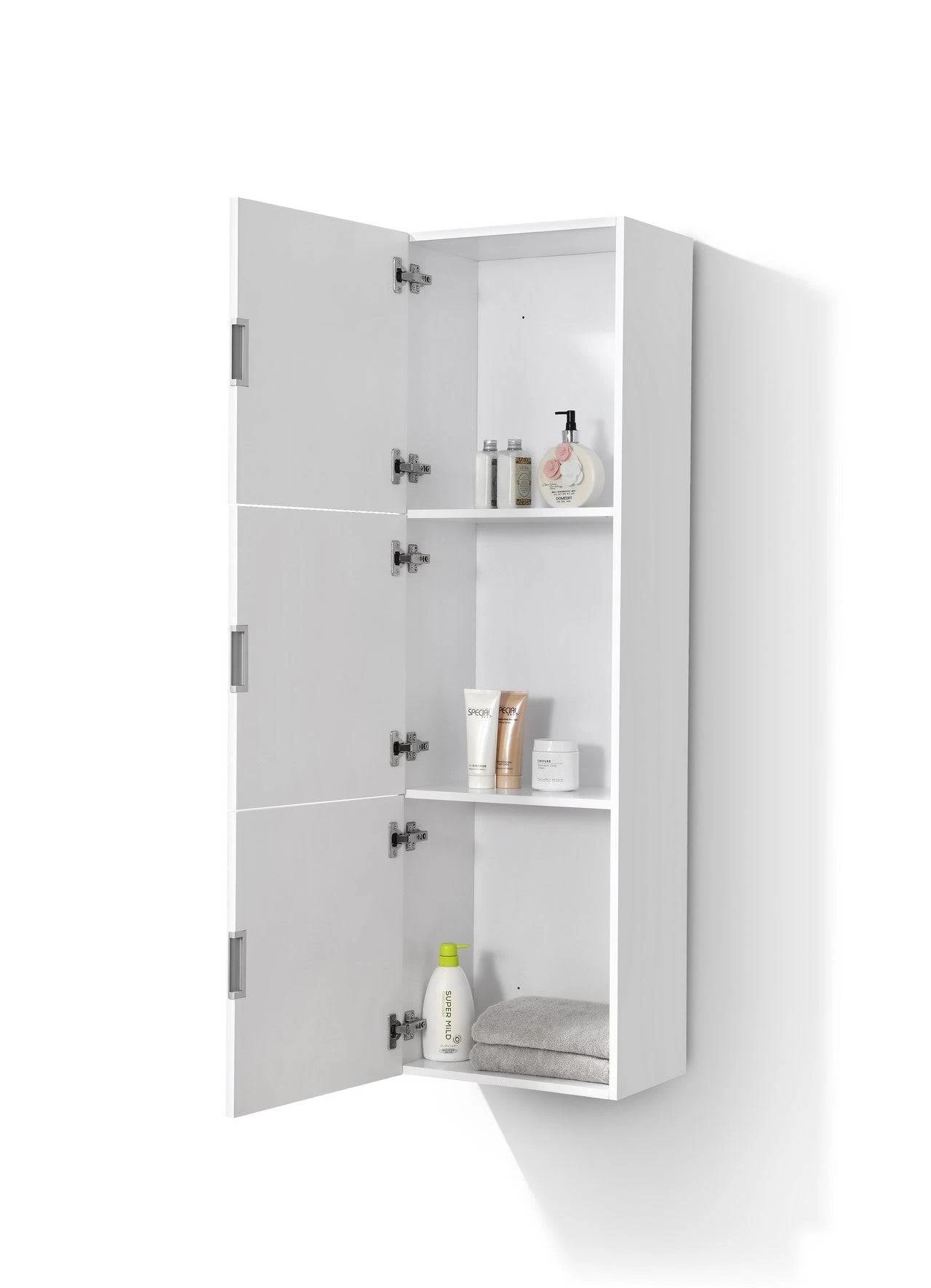 The Bliss Linen Side Cabinet features three doors with integrated Soft-Closing hardware and three large storage areas to store bathroom essentials. It is perfect to store large towels and tall bottles. It matches nicely with any same finish Vanity.