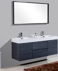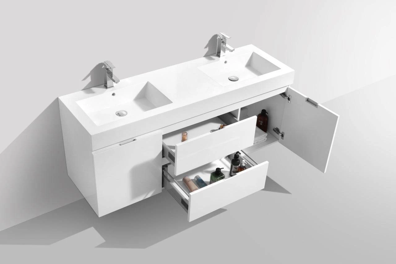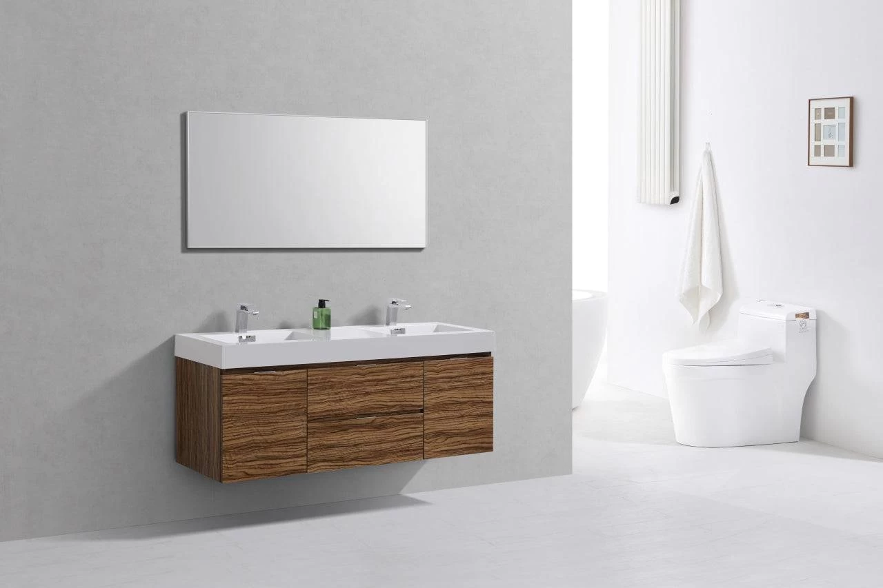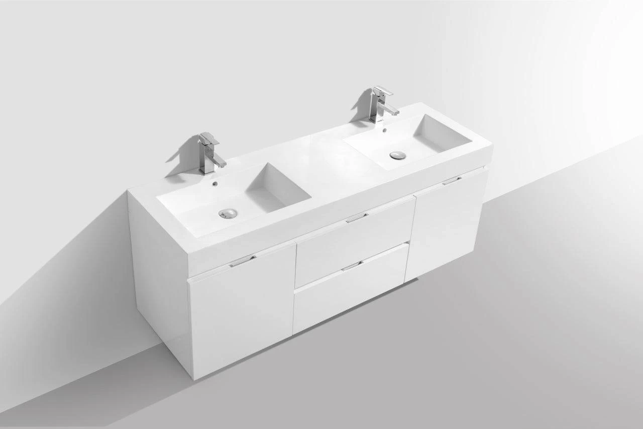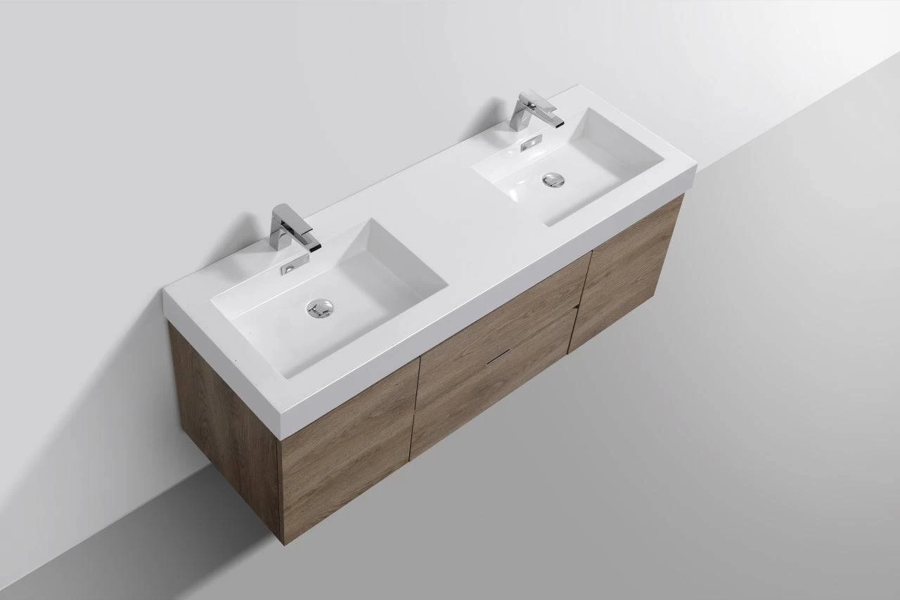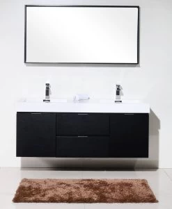 KubeBath Bliss 60 Inch Wall Mount Double Sink Bathroom Vanity