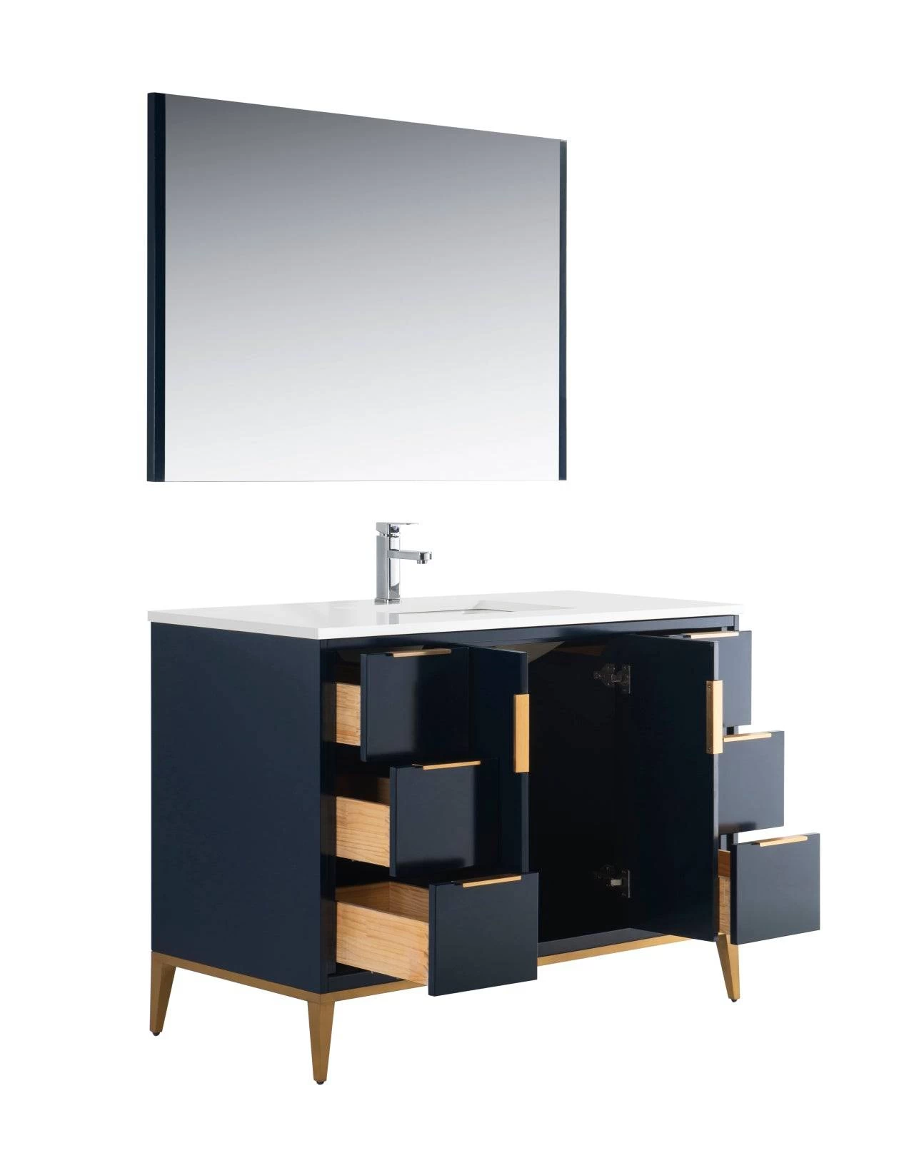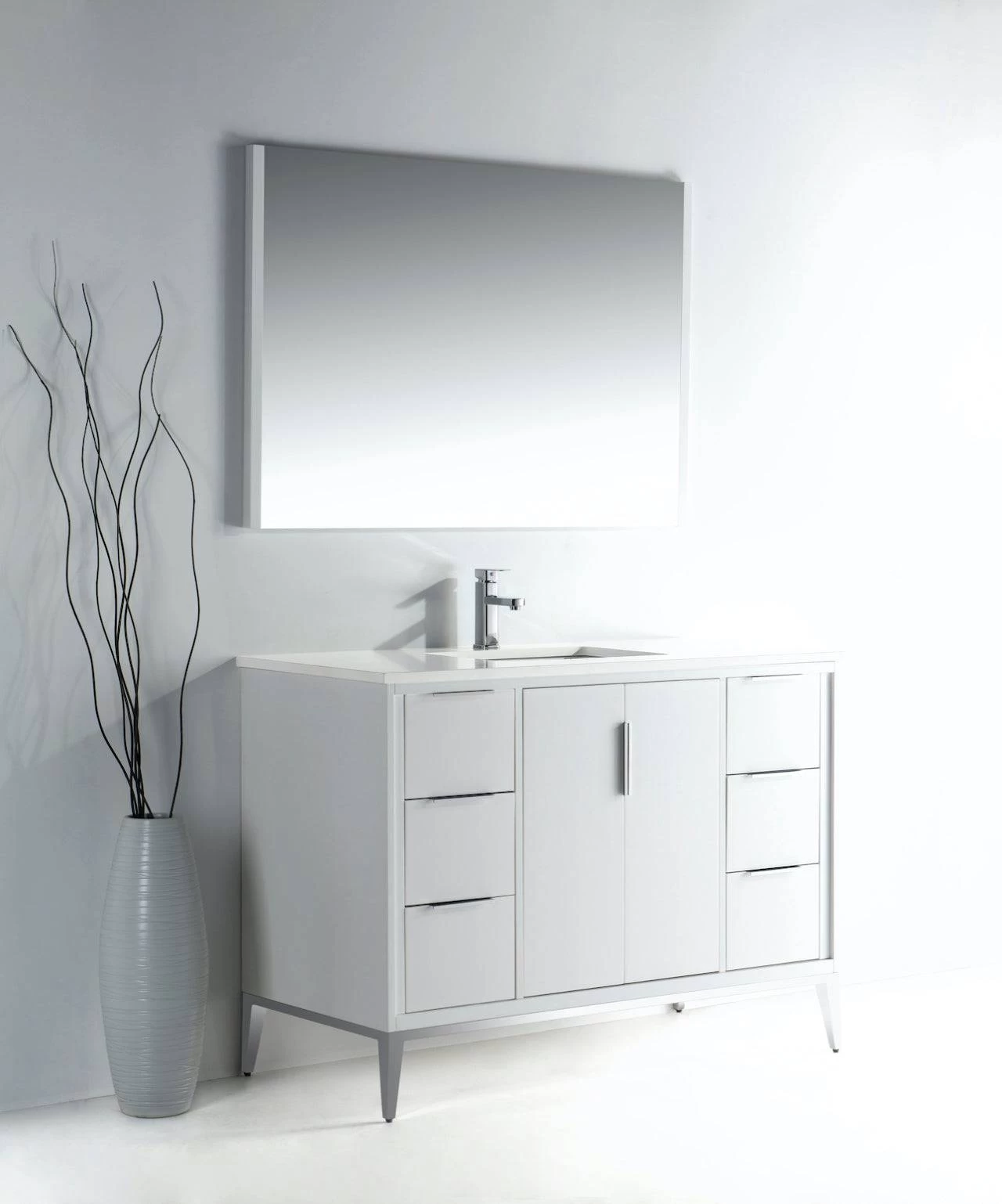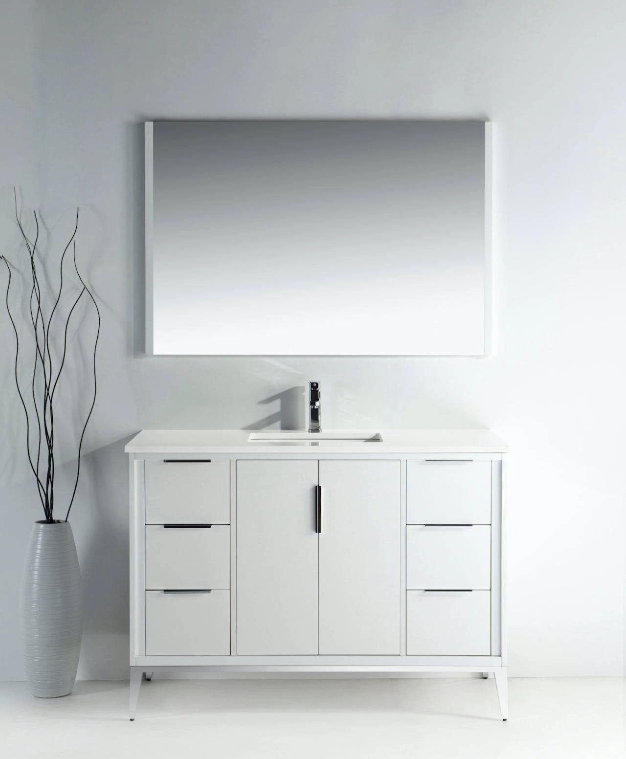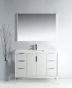 The Divani 48″ Vanity features six fully functional drawers, 2 doors and a pure white Quartz countertop with white Ceramic undermount Sink.