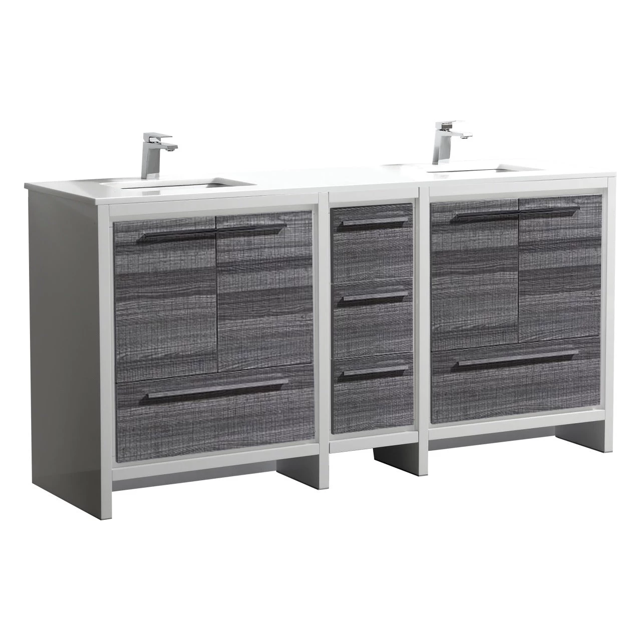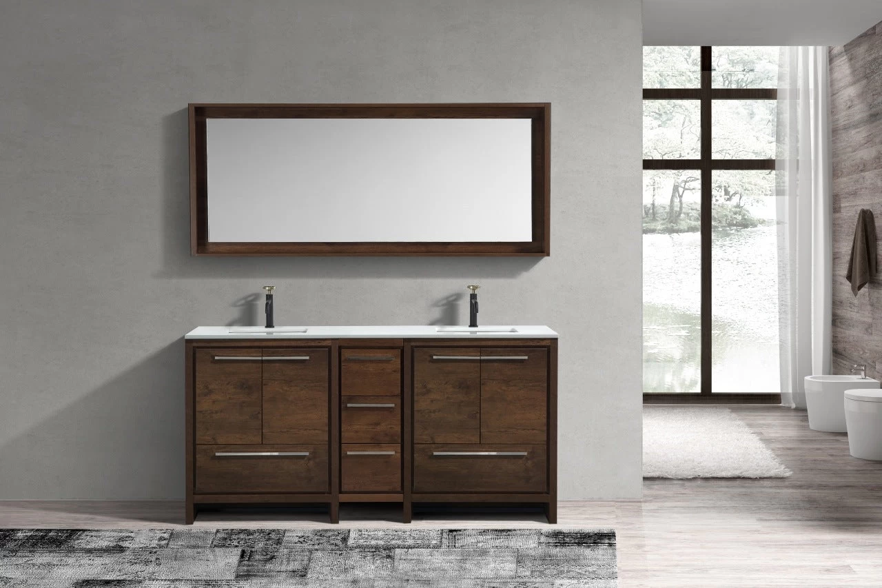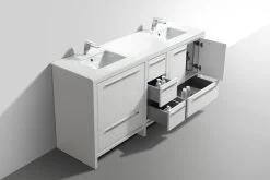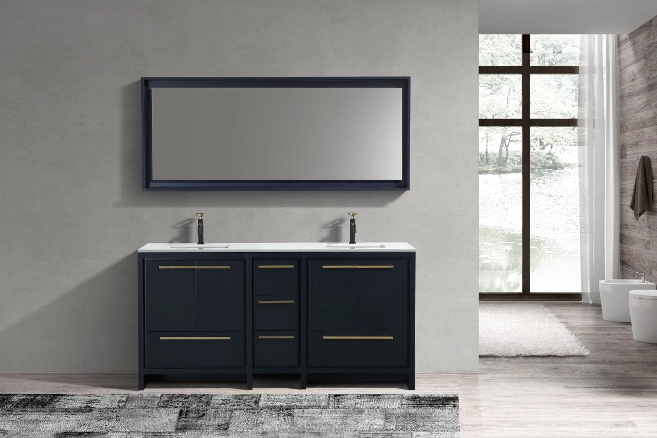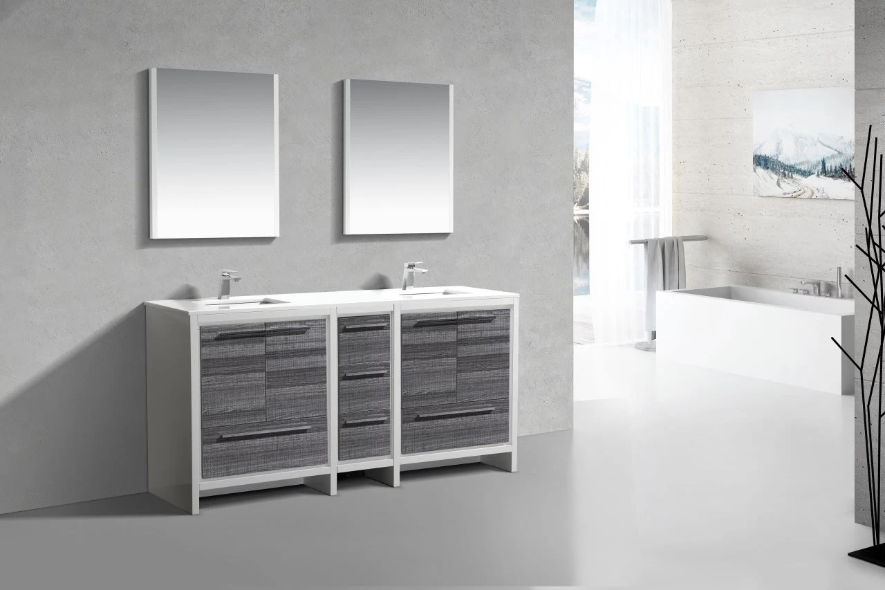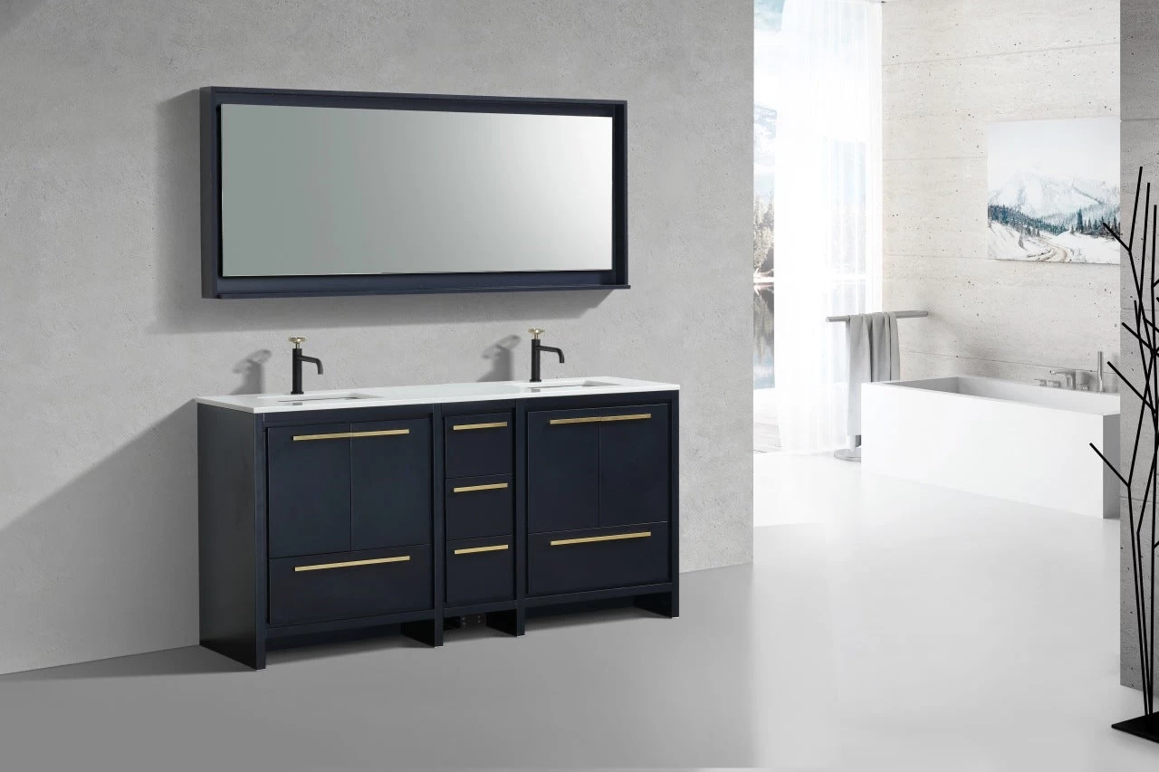 The Dolce Vanity by KubeBath is one of the most elegant modern Bathroom Vanities around. This 72 Inch double sink model comes with a durable pure Quartz Countertop and features four Doors and five Drawers with high-quality European Hardware, that provides smooth soft-closing operation. Top Drawer features push-open operation.