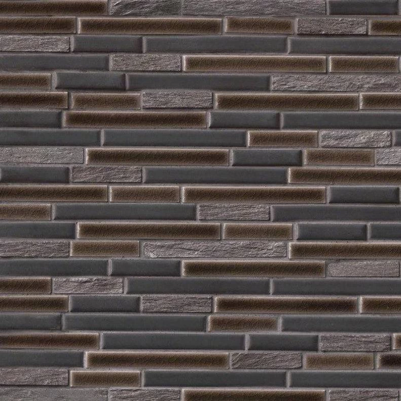 Our Titan Interlocking Mosaic Wall Tile features a combination of dramatic porcelain and stones in rich blacks and grays. This patterned interlocking mosaic tile complements a variety of other premium tile and slab products in MSI’s inventory. Use this bold tile to create a stunning kitchen backsplash, shower, accent wall, or design element.