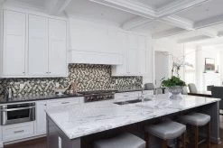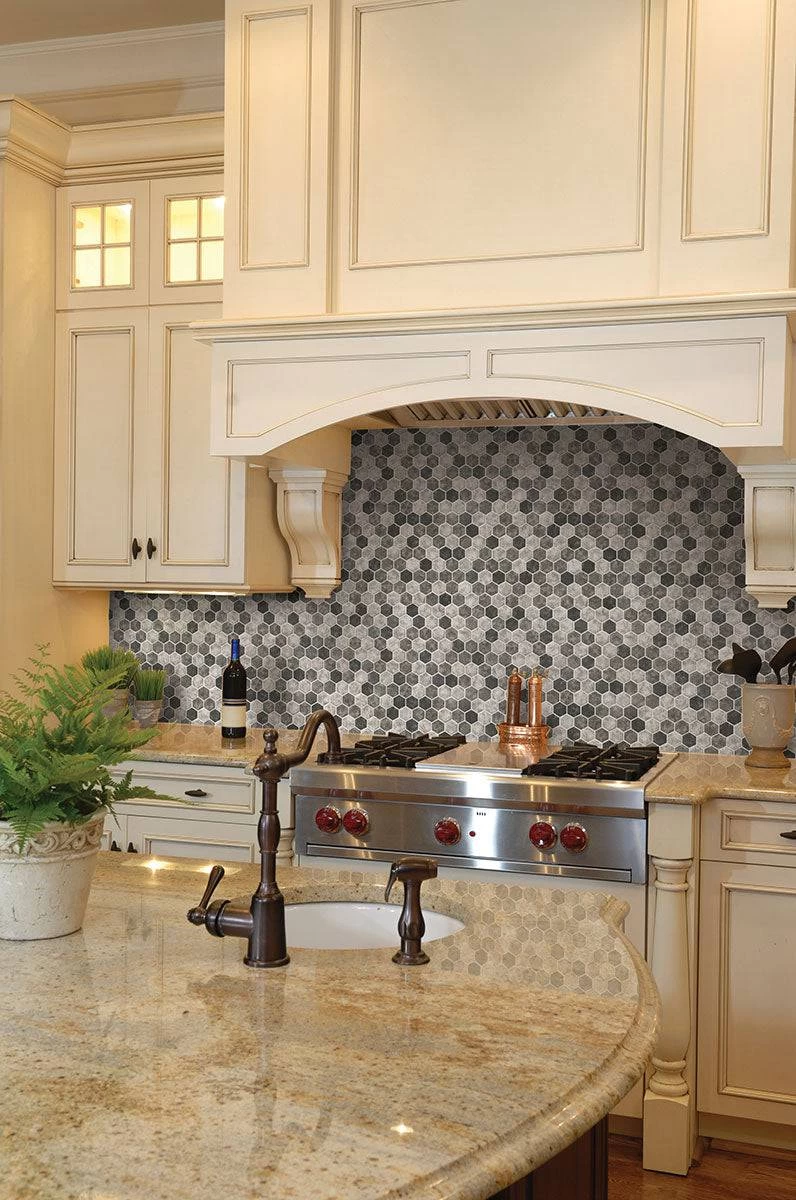 Urban Tapestry 2 in. Recycled Glass Hexagon Mosaic Tile strikes the perfect balance between traditional and contemporary with neutral colorways of soft gray, creamy white, and deep charcoal. Durable, low-maintenance, and highly versatile, this mosaic gives residential and light commercial spaces a touch of visual intrigue. It’s perfectly suited for a kitchen backsplash, but why stop there? You can also use it on countertops, accent walls, shower walls, or to give a nook distinct personality. This tile is Greenguard Indoor Air Quality Certified® and comes mounted on mesh-backed sheets for a simplified installation and professional finish.
