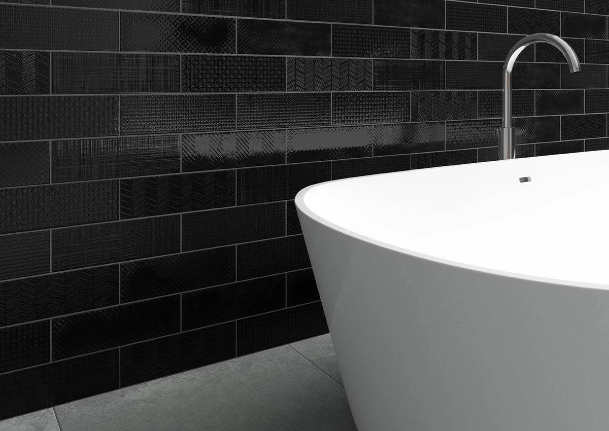 Black tile can create a big impact in a space, and Ink 3D Mix is just the wall tile to transform any wall or accent feature! The oversized subway tile comes in a 4×12 size, and the polished finish emphasizes the four mixed 3-dimensional designs. Pair it with dark grout for a more subtle look, or use white grout for an even bigger pop that’s perfect in a black-and-white design.