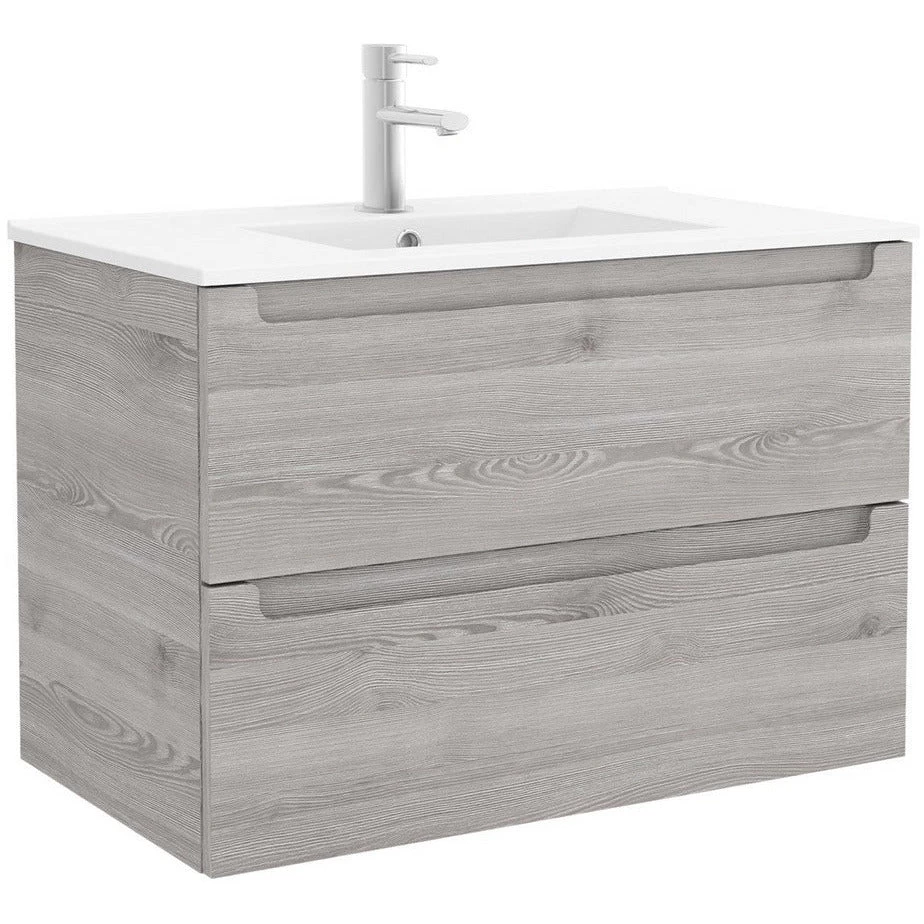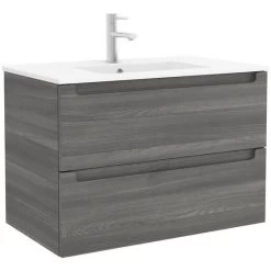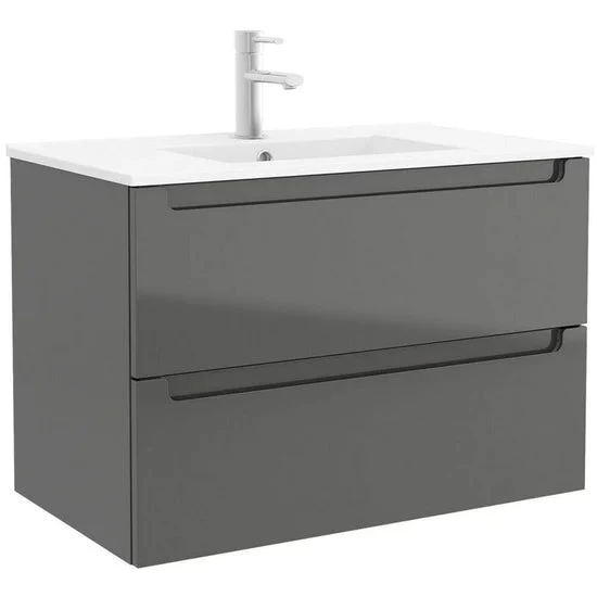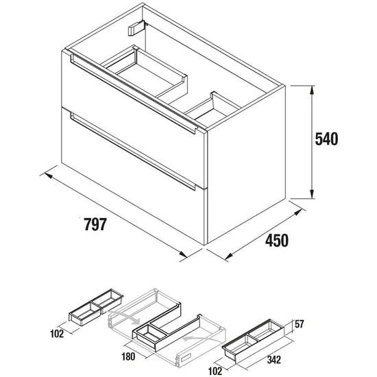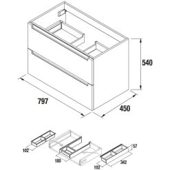 Wall hung unit MONTERREY, 2 metallic drawers full extension with pipe cutout Carbon TX interior and soft closing