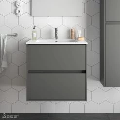Noja 700 lacquered cabinet with two soft-closing drawers + porcelain basin