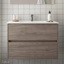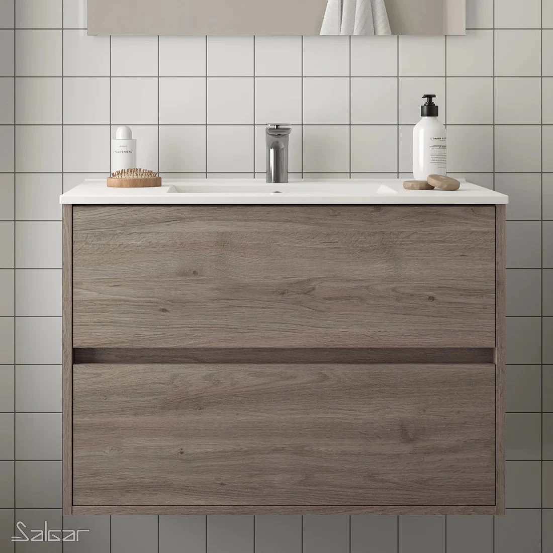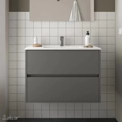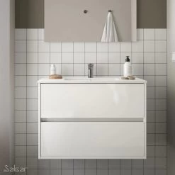 Noja 900 lacquered vanity with two soft closing drawers + porcelain washbasin