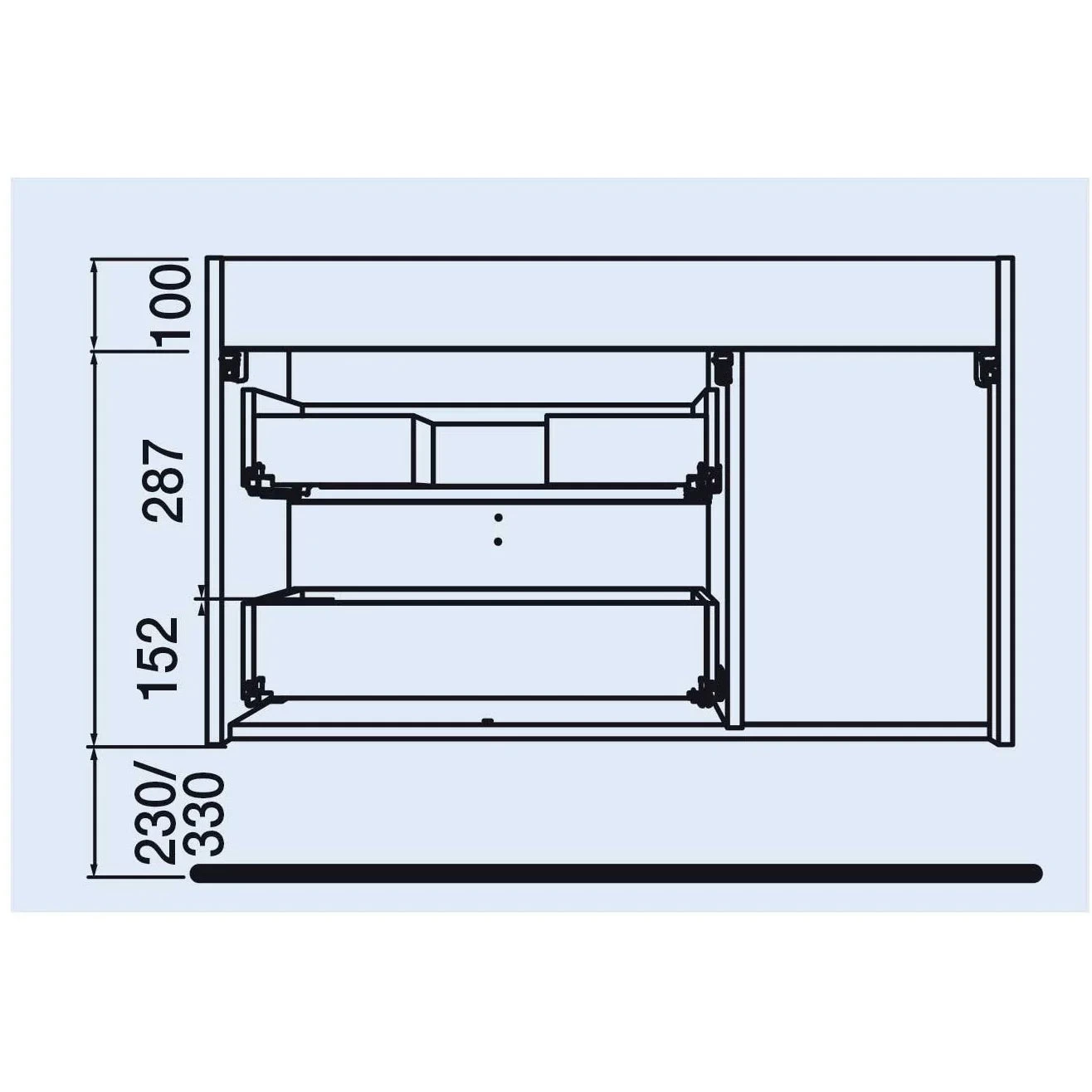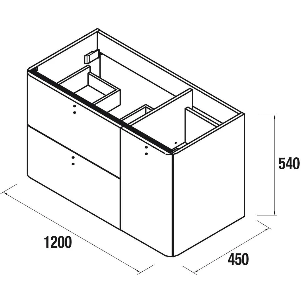 UNIIQ 1200 Wall hung vanity with 2 drawers left hand lavabo and 1 right soft close door