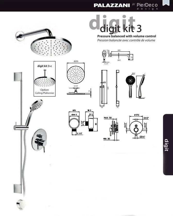 - 1 x 101022-PB-10 – DIGIT – Single lever pressure balance valve with automatic diverter (Chrome).