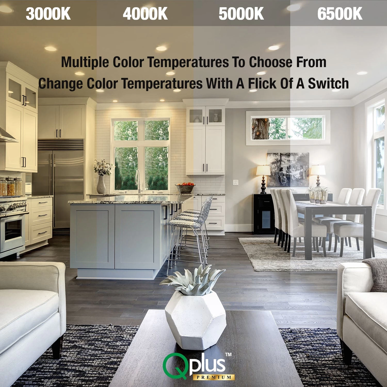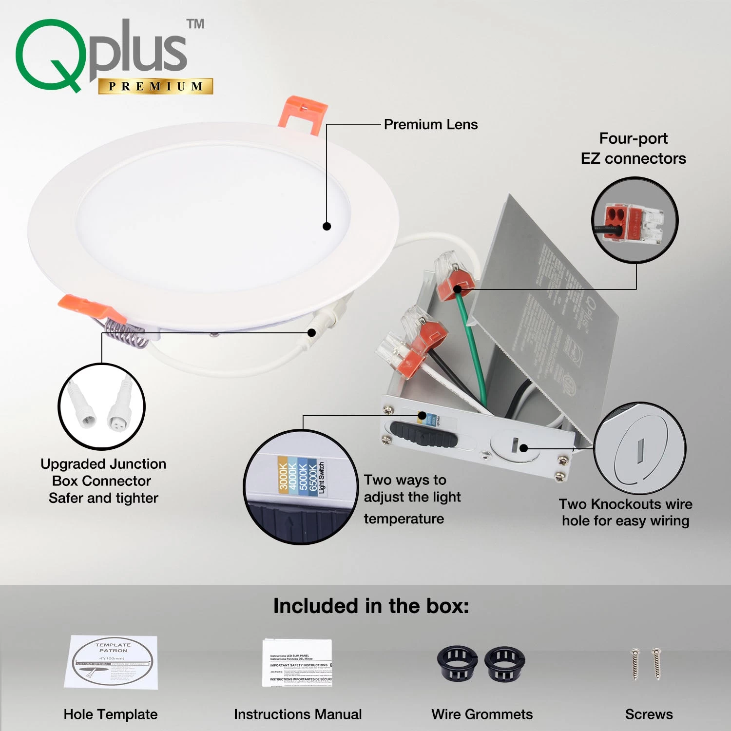 1. CCT Switch in Junction Box: set to 3000K or 4000K or 5000K or 6500K in the junction box or Light Switch to change the temperature using a regular wall switch.
