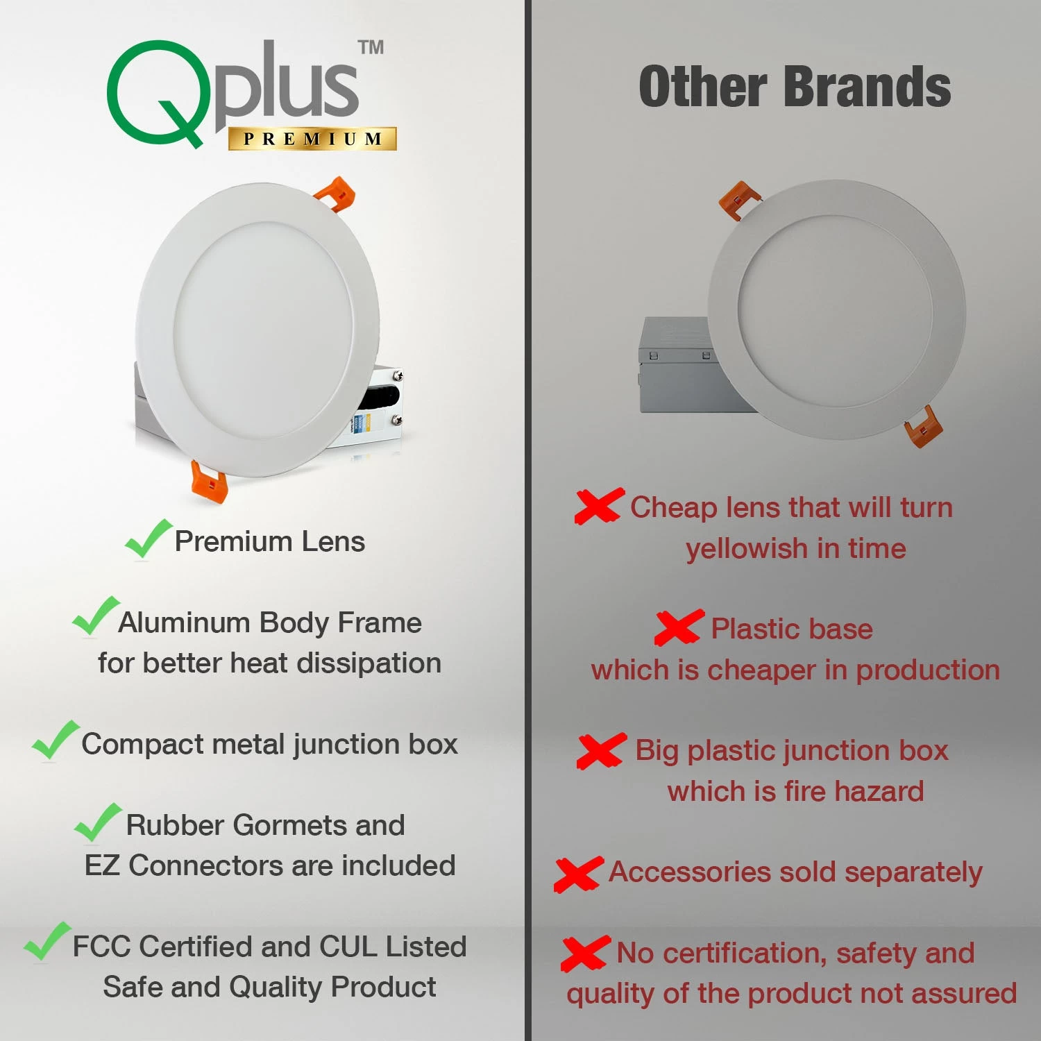 QPLUS 4CS CCT changing 6 Inch 13W (=100W) Slim Recessed LED Pot Lights is Energy Star Certified, cETLus listed, and Type IC rated.