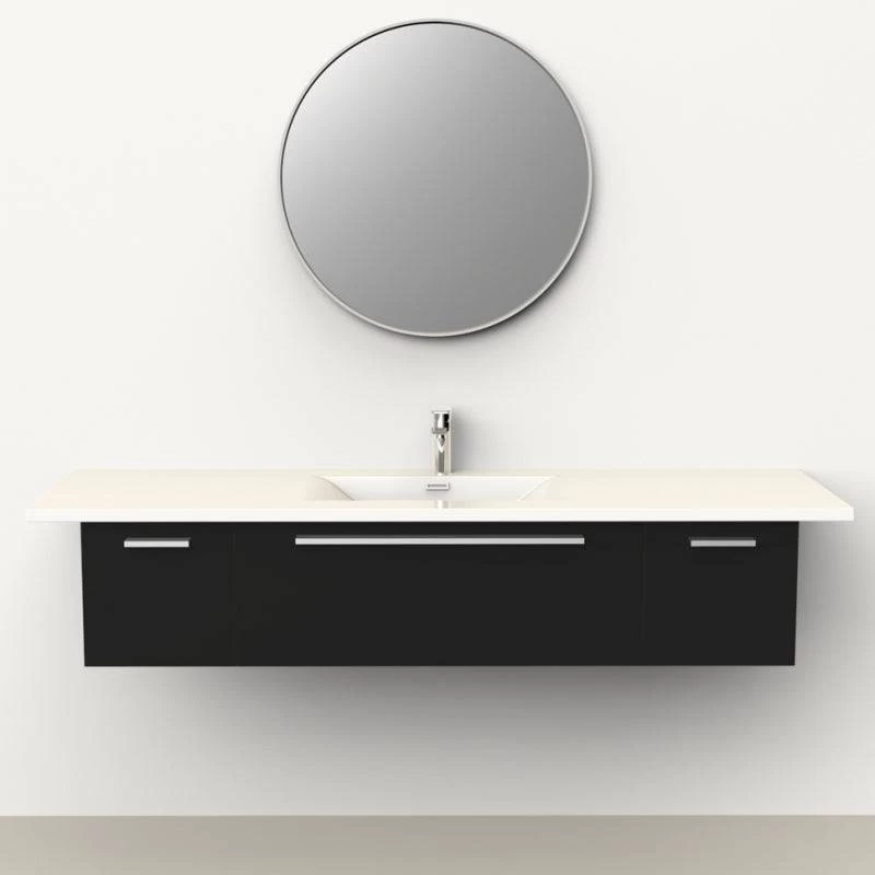 Basin cabinet with 3 drawers. Non-pierced basin. (Mirror not included.) The kit includes: the basin RMP1600CBL, the main cabinet RMP800VT1 and 2 side cabinets RMP300ST1.
