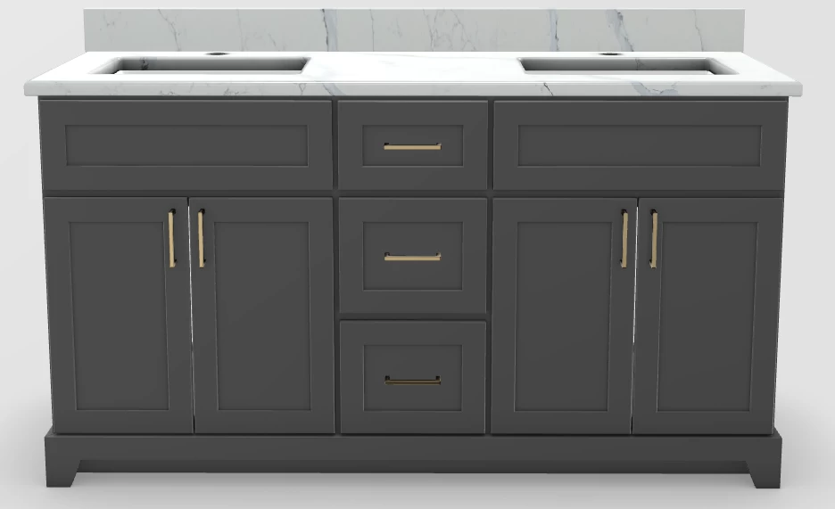 Five shades of Grey Premium Painted Collection from Stonewood. Only 60″ and 72″ inch vanities come with double sink options.