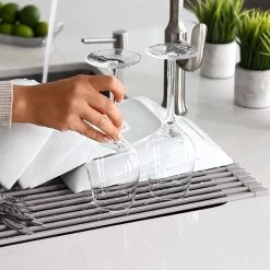 STYLISH® Multipurpose Roll-Up Dish Drying Rack saves space and keeps your counters free of clutter by creating a multi-functional workspace directly over your kitchen sink. Place it over the sink to wash fruits and vegetables and to dry dishes and produce or use it as a rinsing rack.