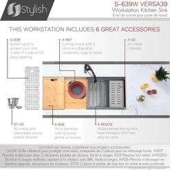 This sink features a double ledge rail and includes several durable and sturdy accessories for the best use of space, however, there are more accessories available to complement the style and function of your sink workstation. Our accessories are designed to fit perfectly with your single-bowl kitchen sink and offer advanced convenience.