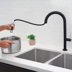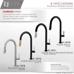 Available in four finished: Complement the décor of your kitchen with any of these four available finishes. 100% Matte Black, Matte Black with Brushed Nickel head/handle, Matte Black with Brushed Gold head/handle or 100% Brushed Nickel.