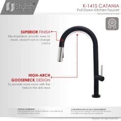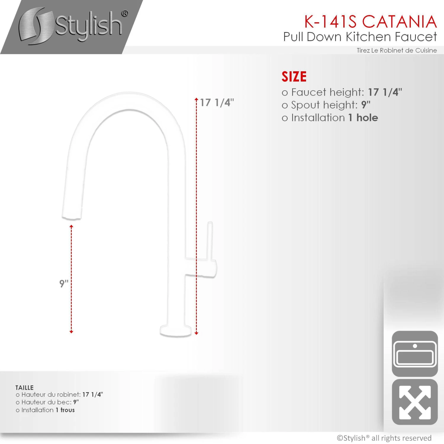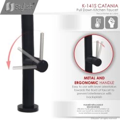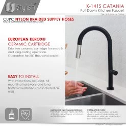 This kitchen faucet is designed to meet the highest plumbing standards in north America. Made from lead-free materials and top quality components, it is engineered to last. This pull down single handle kitchen faucet is extra durable and will not rust or corrode.