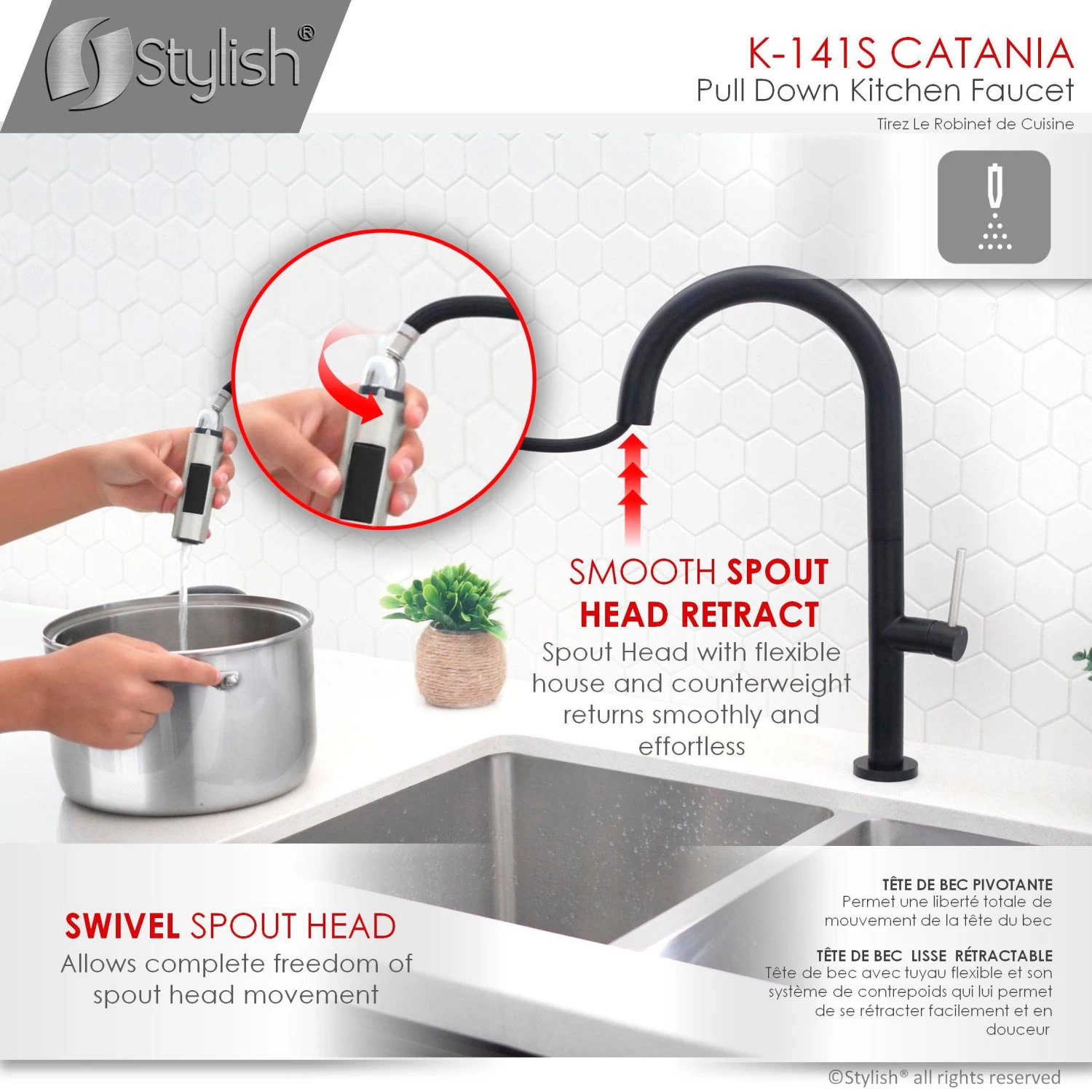 Strong and durable construction: This kitchen faucet is designed to meet the highest plumbing standards in north America. Made from lead-free materials and top quality components, it is engineered to last. This pull down single handle kitchen faucet is extra durable and will not rust or corrode.