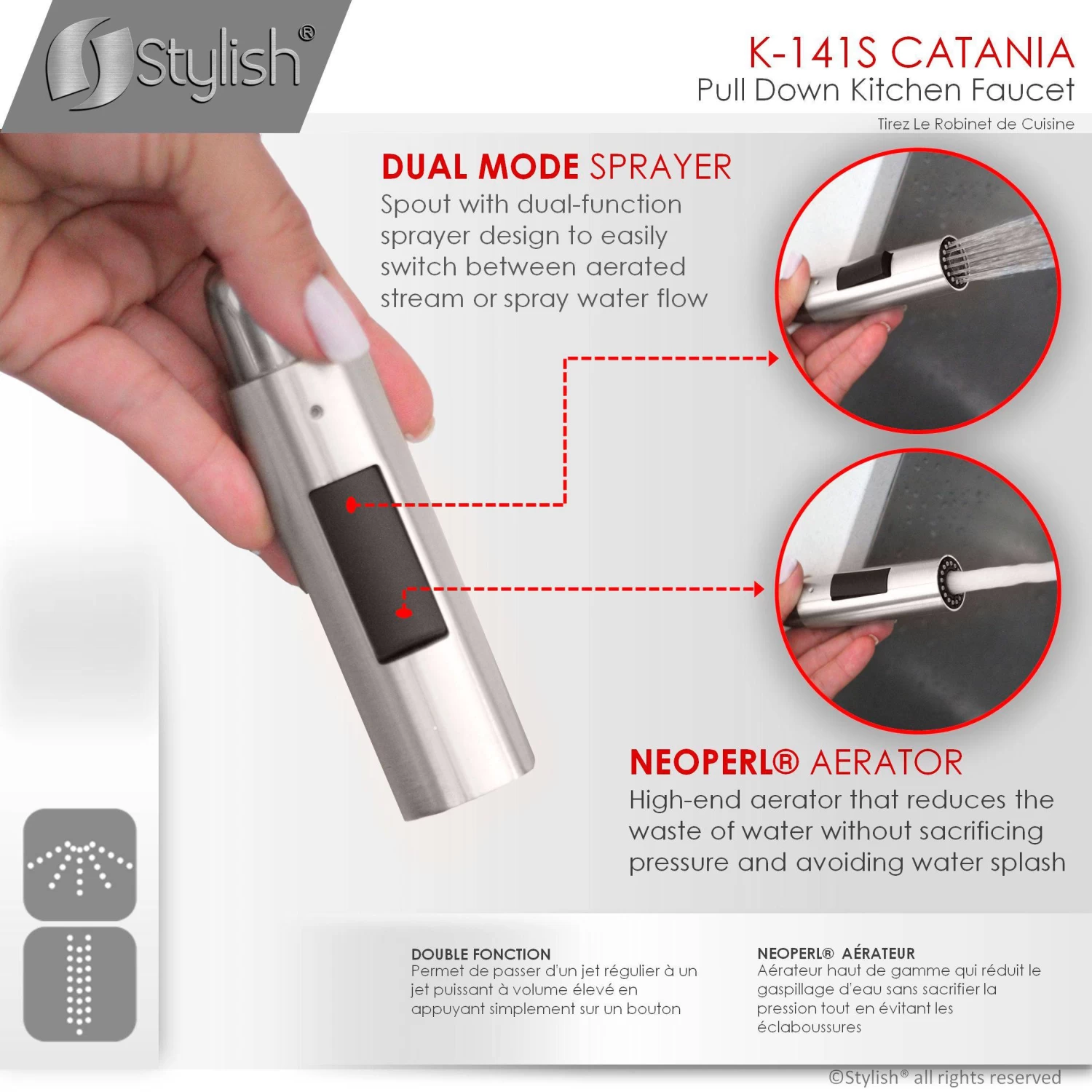Easily and ergonomically switch from spray to stream. Aerated stream is perfect for filling water and spray mode is perfect for rinsing. With the pull-down sprayer you can easily access the entire sink area.