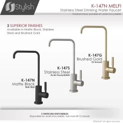 This Cold Water Dispenser is Available in Three Finishes. Choose From Stainless Steel, Brushed Gold or Matte Black to Complete Your Kitchen Décor.