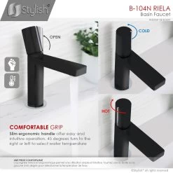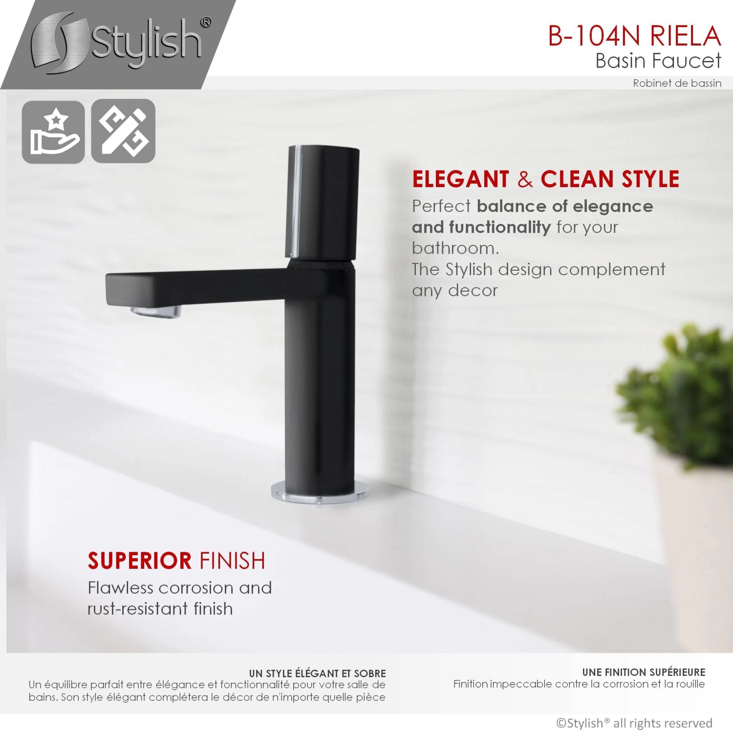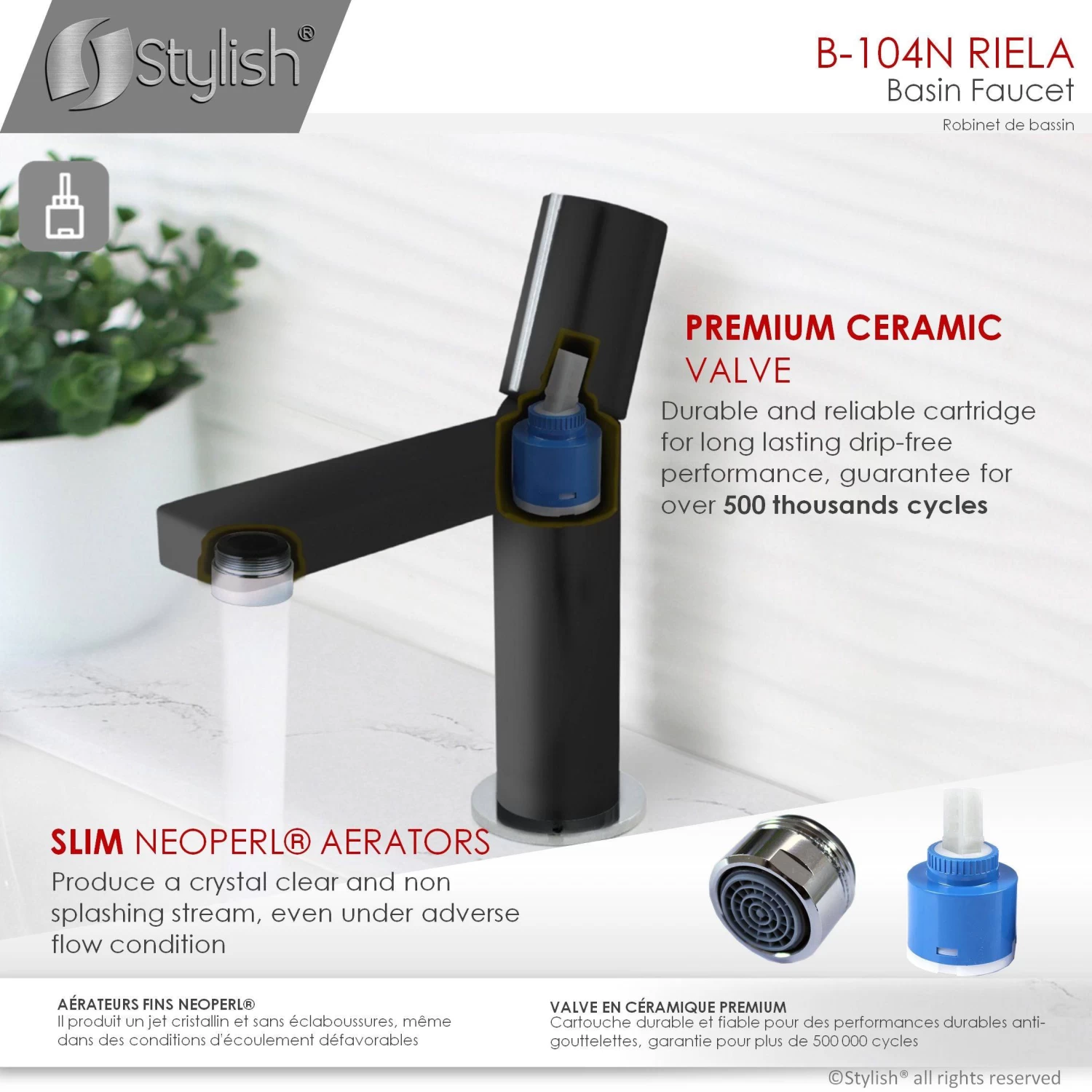 This stunning single handle bathroom faucet offers a cylindrical handle with single lever which is designed to make water flow and temperature adjustments easier. This bathroom faucet will add a contemporary flair to your bathroom and will give you a comfortable washing experience. This single handle bathroom faucet features ceramic disc cartridges and solid brass construction for longevity and watertight functionality. This bathroom sink faucet is made using top-quality components, including a ceramic cartridge for reliable drip-free use and a best-in-industry aerator to reduce water waste without compromising pressure. Our bathroom faucet is made from solid brass and is available in three finishes, polished chrome, matte black with chrome and matte black with gold. Designed for a single hole installation, this bathroom faucet fits any basin or undermount sink as well as standard US and Canada plumbing connections. Smooth surface plating not only prevents scratches, but it is also easy to clean. This modern basin water tap is easy to install and comes with installation instructions, all mounting hardware and hot-cold waterlines included.