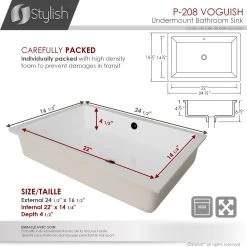 Being generous in size (24” L x 16” W x 6 1/2” D) yet not bulky at all, this luxurious bathroom sink fits anywhere you want. Ideal for small bathrooms and larger ones! Suitable for personal and professional use, hotels, offices, restaurants, bars, hair salons, schools, stores, and spa centers This stunning white porcelain round undermount sink is a beautiful, timeless addition to your home.