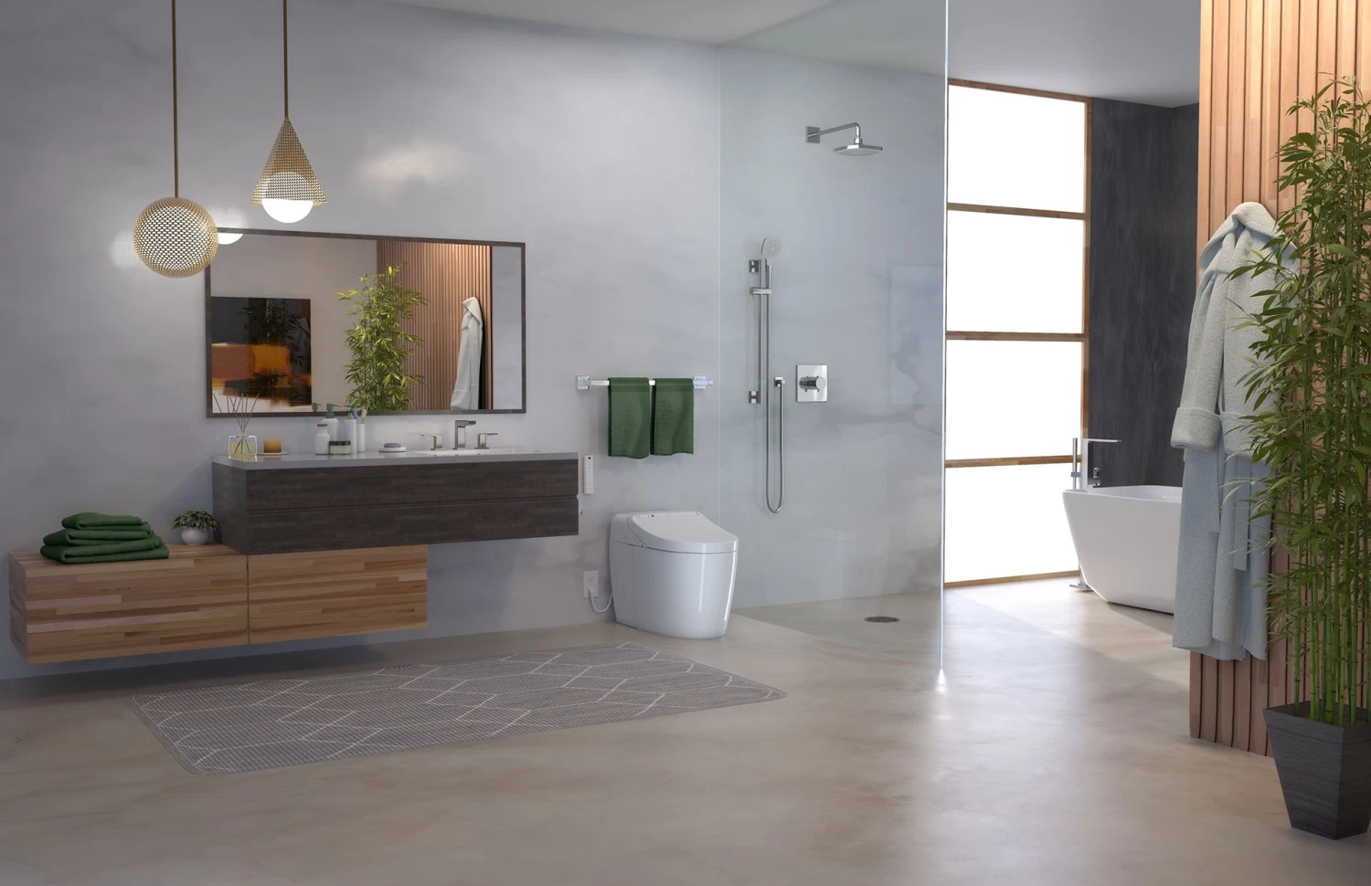 The WASHLET G450 a smart toilet and a convenient compact design. The TORNADO FLUSH® system uses an efficient 1.0 or 0.8 GPF. Complete with our CEFIONTECT® ion barrier glaze. The G450 minimizes debris from sticking to ceramic surfaces, keeping your toilet cleaner, longer.