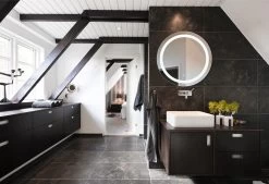 Unique is beautiful—and the Marilyn, from WarmlyYours’ Marquee Series of LED Mirrors, is both. This curvaceous, circular mirror improves any room with vibrant, full-spectrum lighting and an alluring, organic design. The wall-mounted Marilyn features 3/16″ silvered glass and a 27.5″ diameter. Highly efficient supplemental LED light flows through a frosted inner circle, which gives the light a uniquely warm and generous hue. In fact, the color temperature of the LEDs used in the Marilyn (5,000 K) is the same as natural daylight. The smooth pencil-edge exterior profile of this model gently refracts the LED light and the copper-free glass provides a crystal clear reflection.
